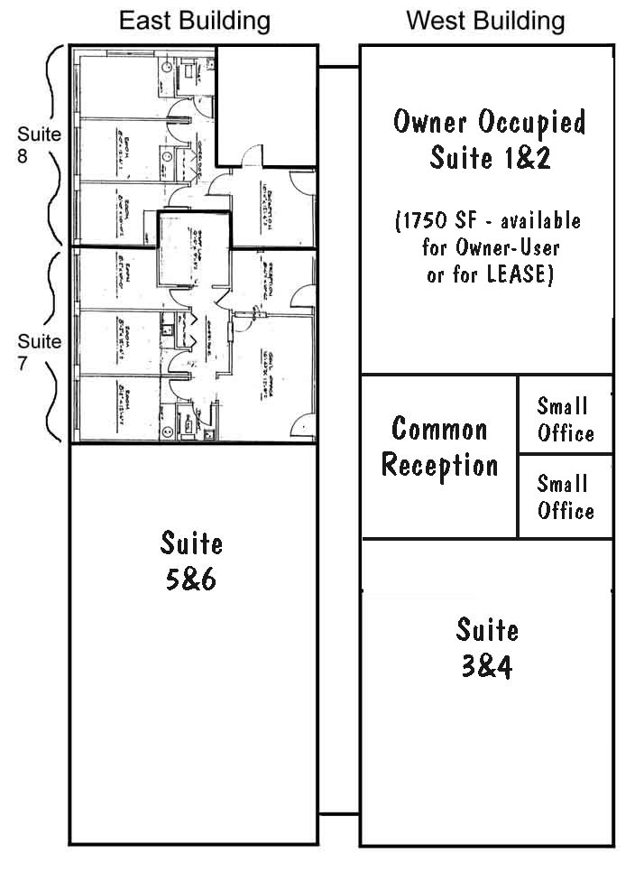 Information gathered from owners and/or sources deemed reliable but not guaranteed. Subject to errors, omissions or withdrawal without notice. For more information, or if you are in the market for a new office location, please contact us. We can show you the space at your convenience or review our other inventory.