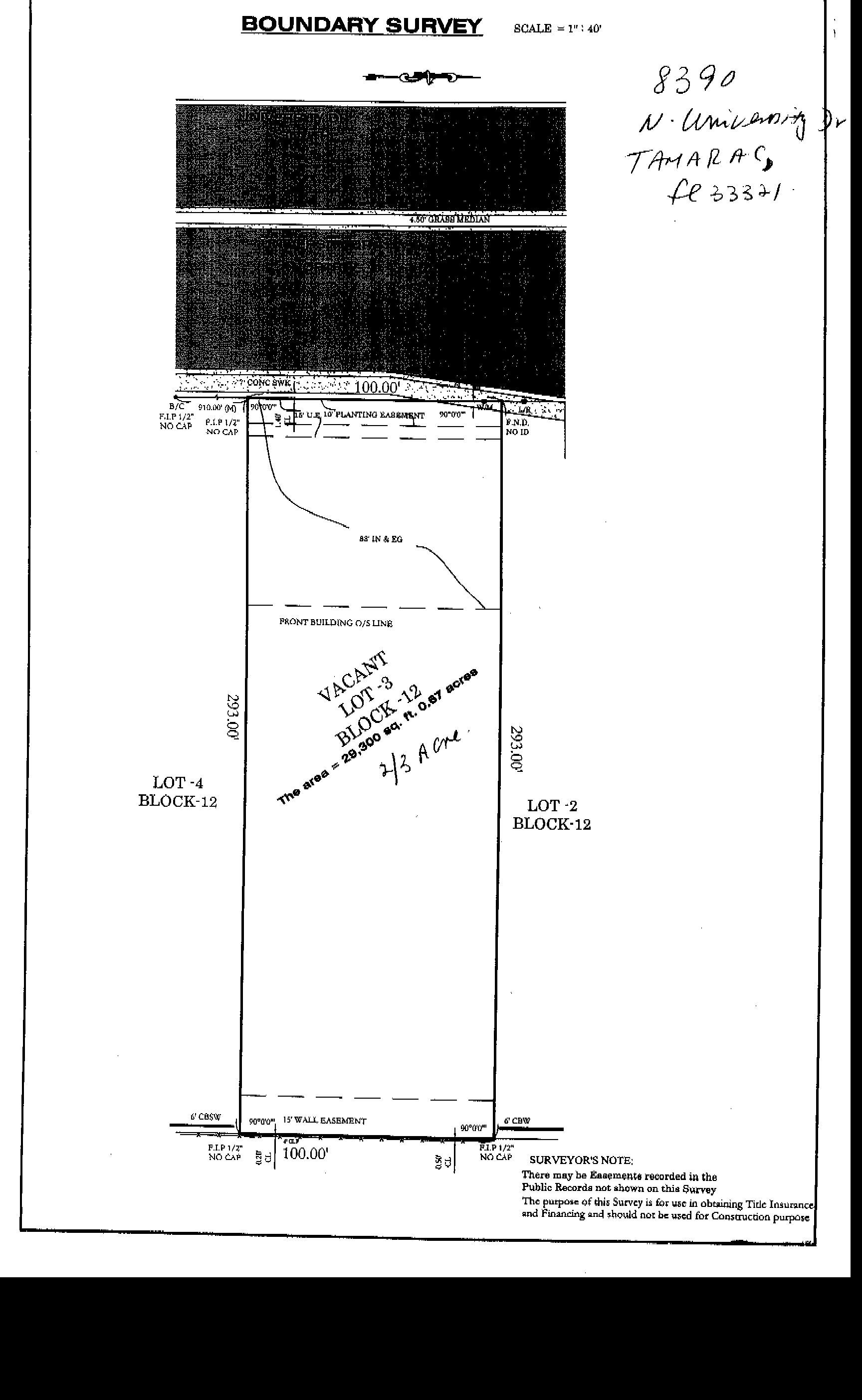 ±.66 Acre of Tamarac B-6 zoned land. Frontage on UNIVERSITY Drive!